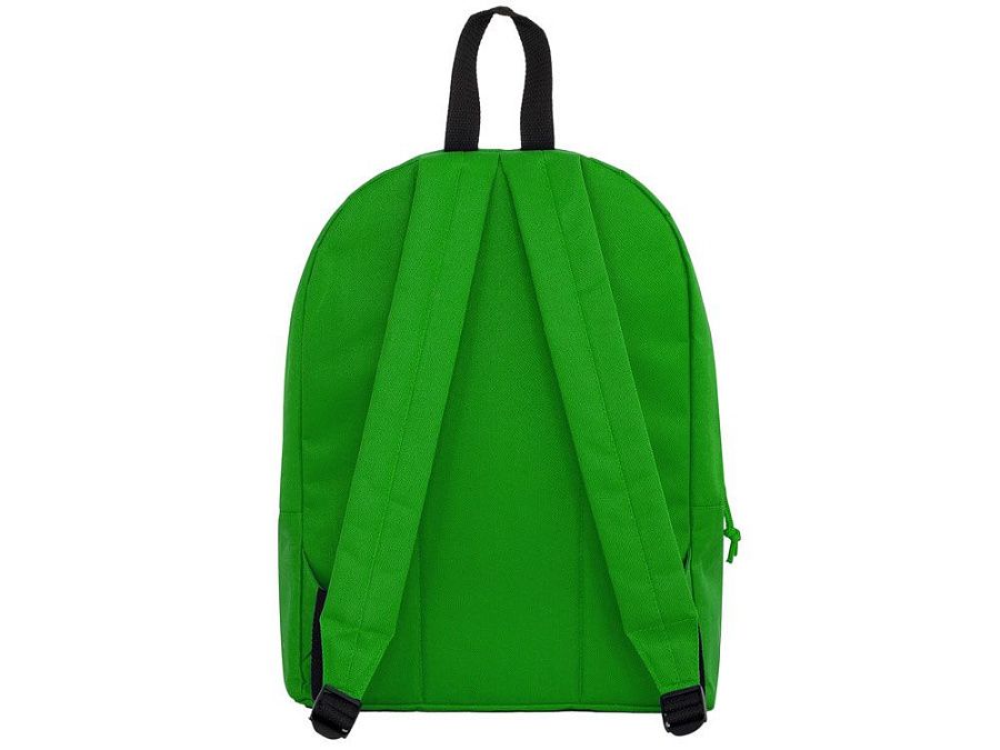 Базовый рюкзак из прочной ткани. Двойной плечевой ремень и контрастная ручка. Два кармана: основной и один спереди с молниями, клапанами и бегунками в тон