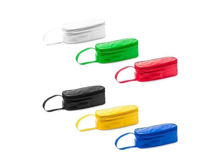 Сумка для сэндвичей из цветного ПВХ с застежкой-молнией. Алюминиевая изотермическая внутренняя обшивка. Практичная ручка для переноски в комплекте.