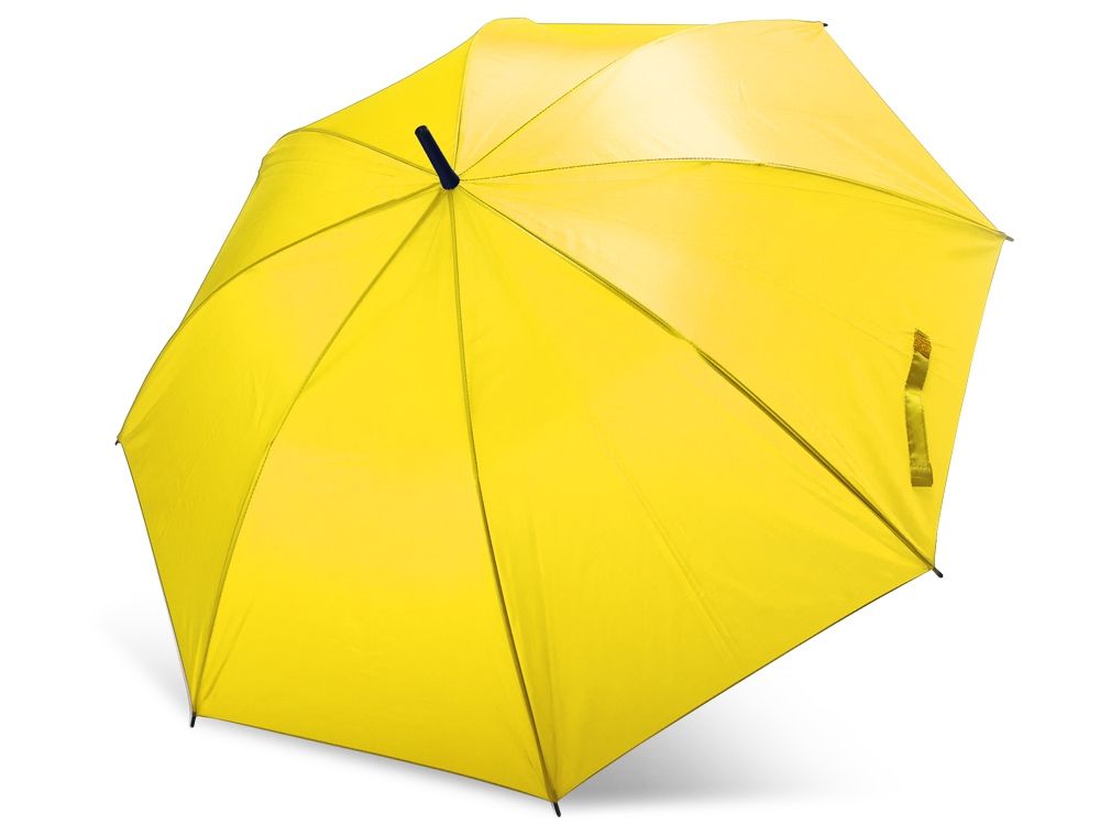 Автоматический зонт с тканью и ручкой в тон. Спицы и наконечники черного цвета. Застежка на липучке. 105 см в диаметре.