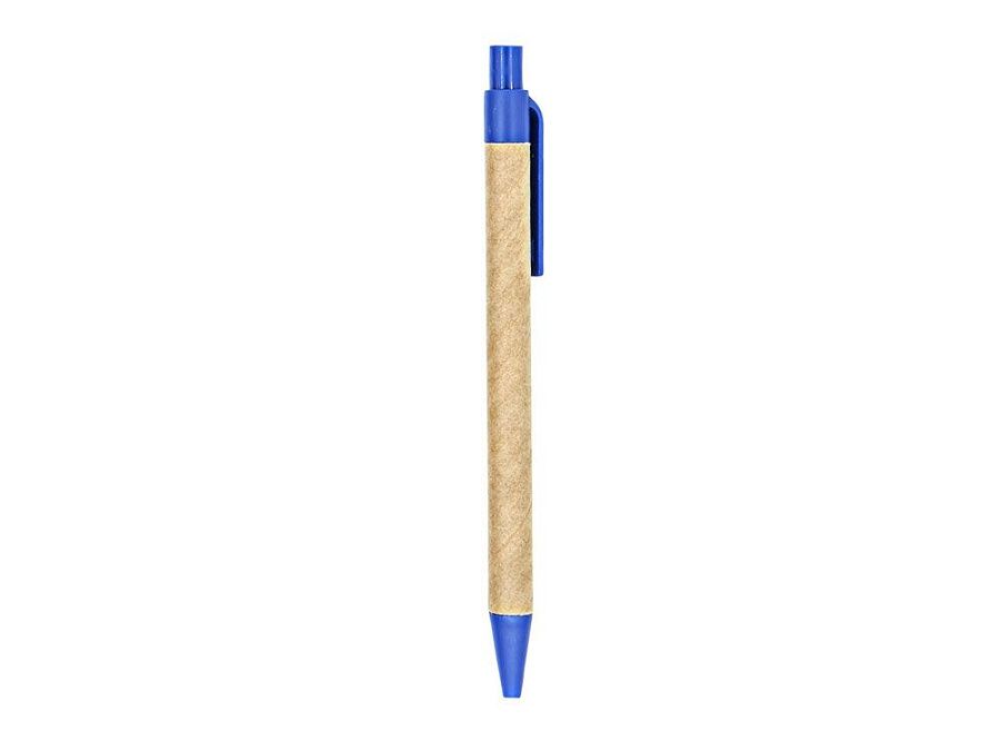 Блокнот на спирали с жесткой обложкой из переработанного картона. Включает шариковую ручку с синими чернилами. 60 простых листов.