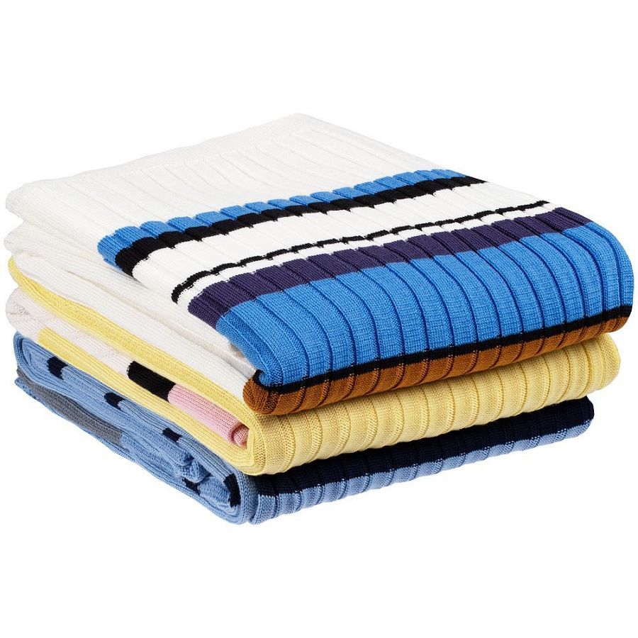 Яркий полушерстяной плед фактурной вязки Friolenta освежит современный интерьер: широкие контрастные линии создадут цветовой акцент в лаконичном дизайне спальни или гостиной.