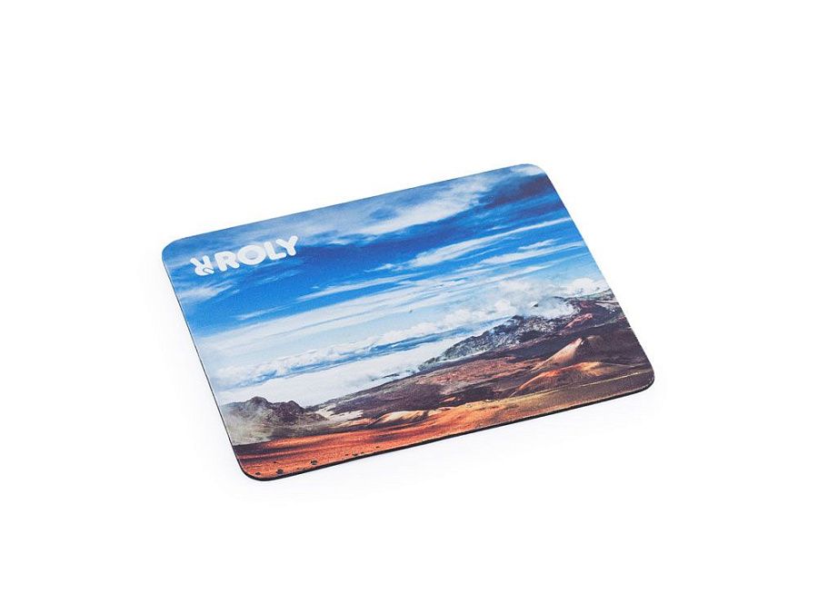 Плоский коврик для мыши с мягкой полиэстеровой поверхностью и нескользящей резиновой основой.