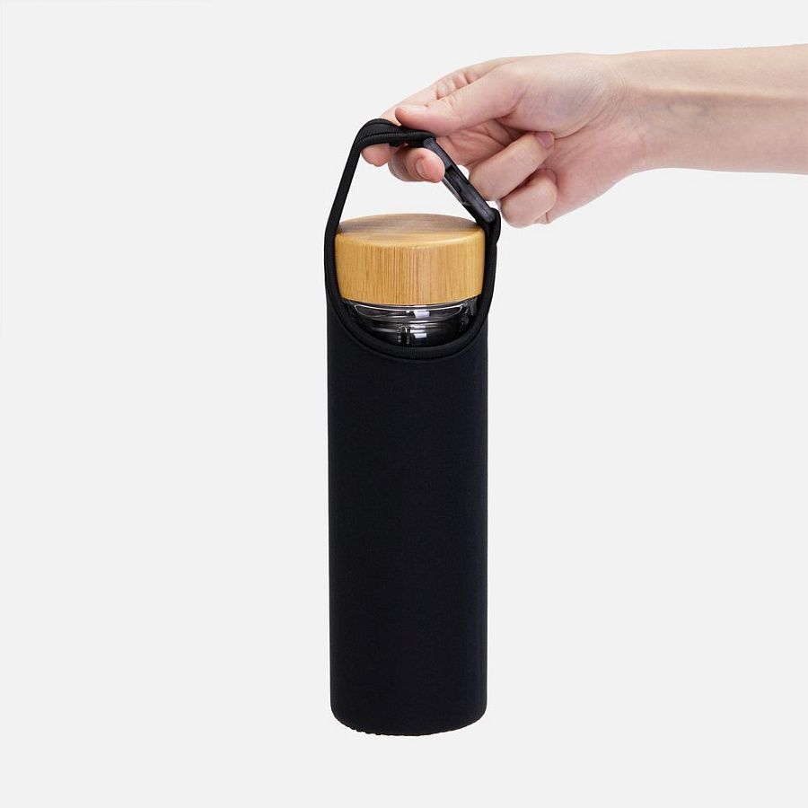бутылка - боросиликатное стекло; чехол - неопрен; ситечко - нержавеющая сталь; крышка - бамбук, пластик