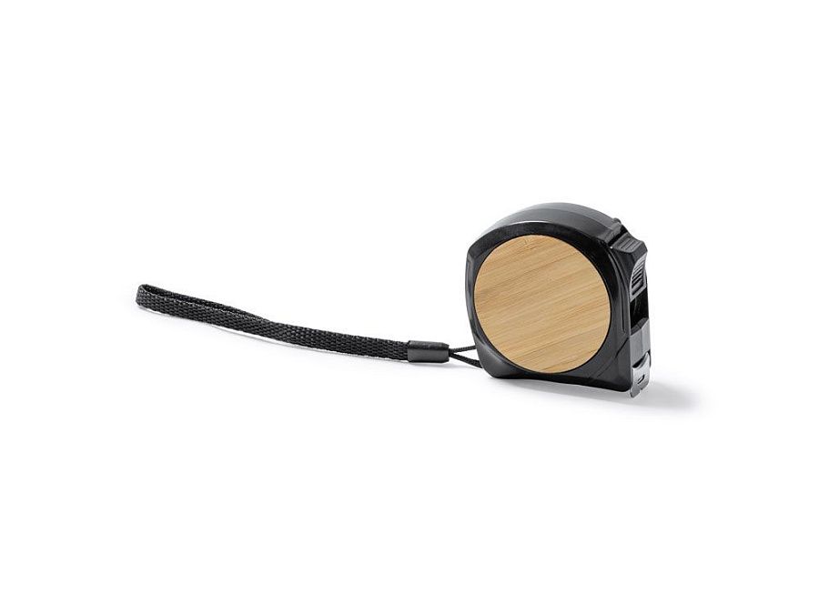 Рулетка на 5 метров. Металлический зажим, ремешок для транспортировки и бамбуковые детали.