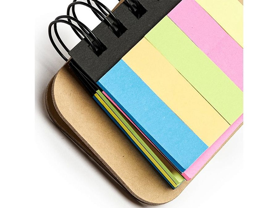 Стикеры для заметок в оригинальном дизайне. Обложка из переработанного картона. Включает стикеры разных цветов двух размеров: 100 больших и 125 маленьких.