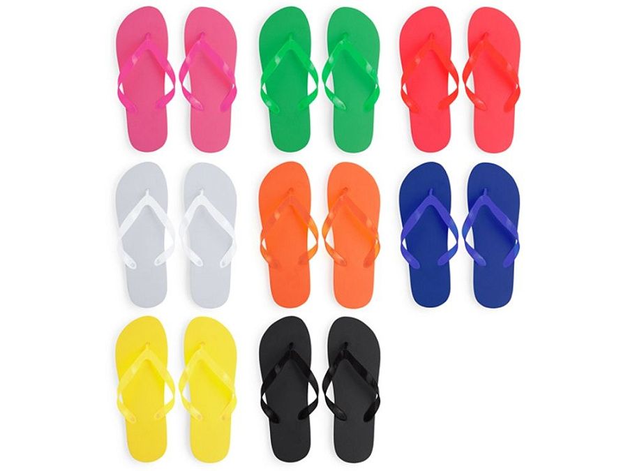 Пляжные шлепанцы с удобной полиэтиленовой подошвой и ремешками в тон.
