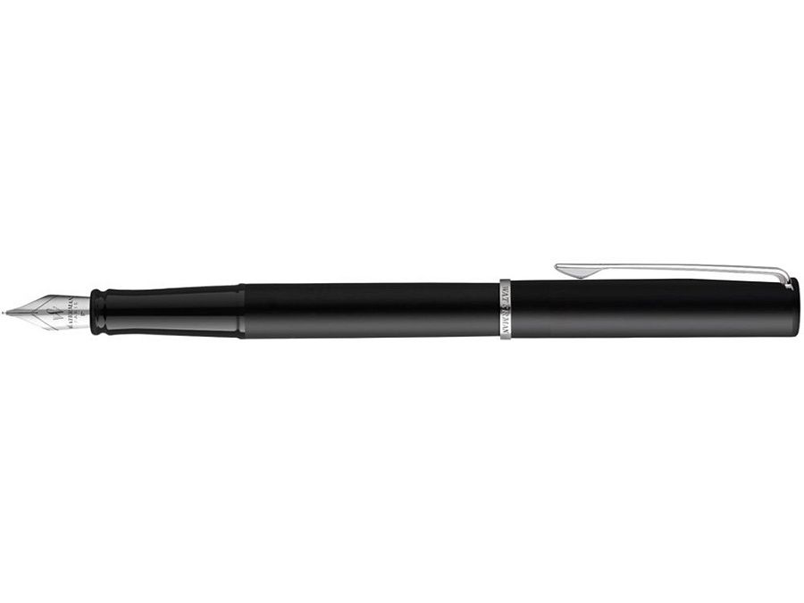 Корпус и колпачок современной и элегантной перьевой ручки выполнен из латуни и покрыт многослойным лаком. Грип-секция изготовлена из высококачественного пластика матового черного цвета, отдельные детали дизайна покрыты хромом. Перьевая ручка оснащается пером из нержавещей стали. Письменный инструмент поставляется в фирменной коробке, в комплекте также присутствует один пробный картридж и гарантийный талон с инструкцией.