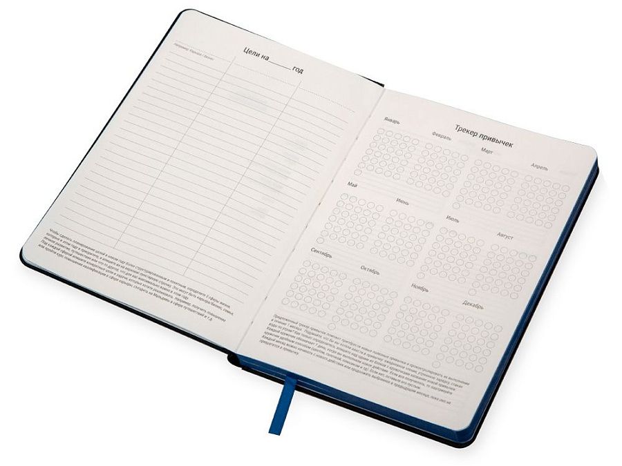 Бизнес-блокнот «Bossy» станет вашим ежедневным помощником не только в работе, но и в достижении личных целей. Информационный блок включает в себя страницы под цели и планы, трекер привычек — необходимые инструменты, которые не дадут ничего упустить из виду, а также отдельные страницы для подведения личных итогов года.  В блокноте 256 страниц, даты не указаны, что позволяет начать вести блокнот в любой удобный день года. Карман для мелочей, резинки, петли для ручки на корешке и ляссе делают этот блокнот очень удобным и позволяют найти нужный раздел максимально быстро. Обложка выполнена из текстурной экокожи, цветной срез и фурнитура в тон делают «Bossy» очень стильным бизнес-аксессуаром. Корешок из экокожи с софт-тач покрытием очень приятен на ощупь. Бумага в «Bossy» гладкая, приятная на ощупь, писать на ней — одно удовольствие, а еще она произведена с заботой об экологии — имеет сертификат FSC.     • 256 страниц в блоке, недатированный     • Карман для мелочей на нахзаце     • Наличие резинки, петли для ручки на корешке и ляссе     • Специальные страницы для целей, записи идей, трекер привычек     • Текстурная обложка     • Наличие контрастных элементов