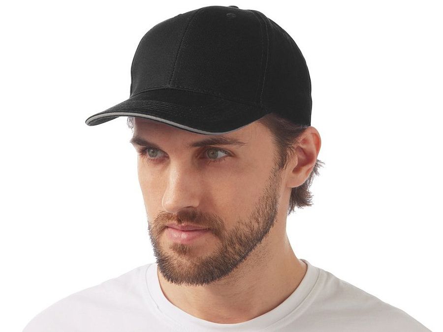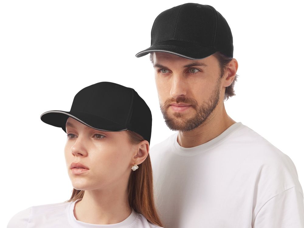 Шестиклинная бейсболка со светоотражающим кантом по козырьку и заднему хлястику - отличный вариант для занятий спортом в вечернее время. Объем регулируется металлической застежкой.