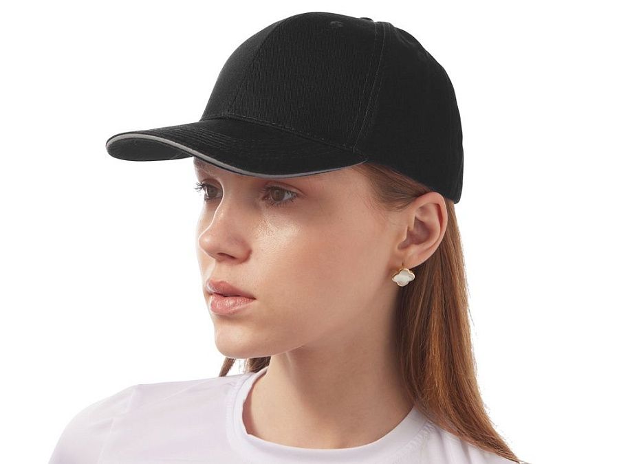 Кепка 6-панельная Greenwich 350, c черным сендвичем, черная, артикул 656000.0303