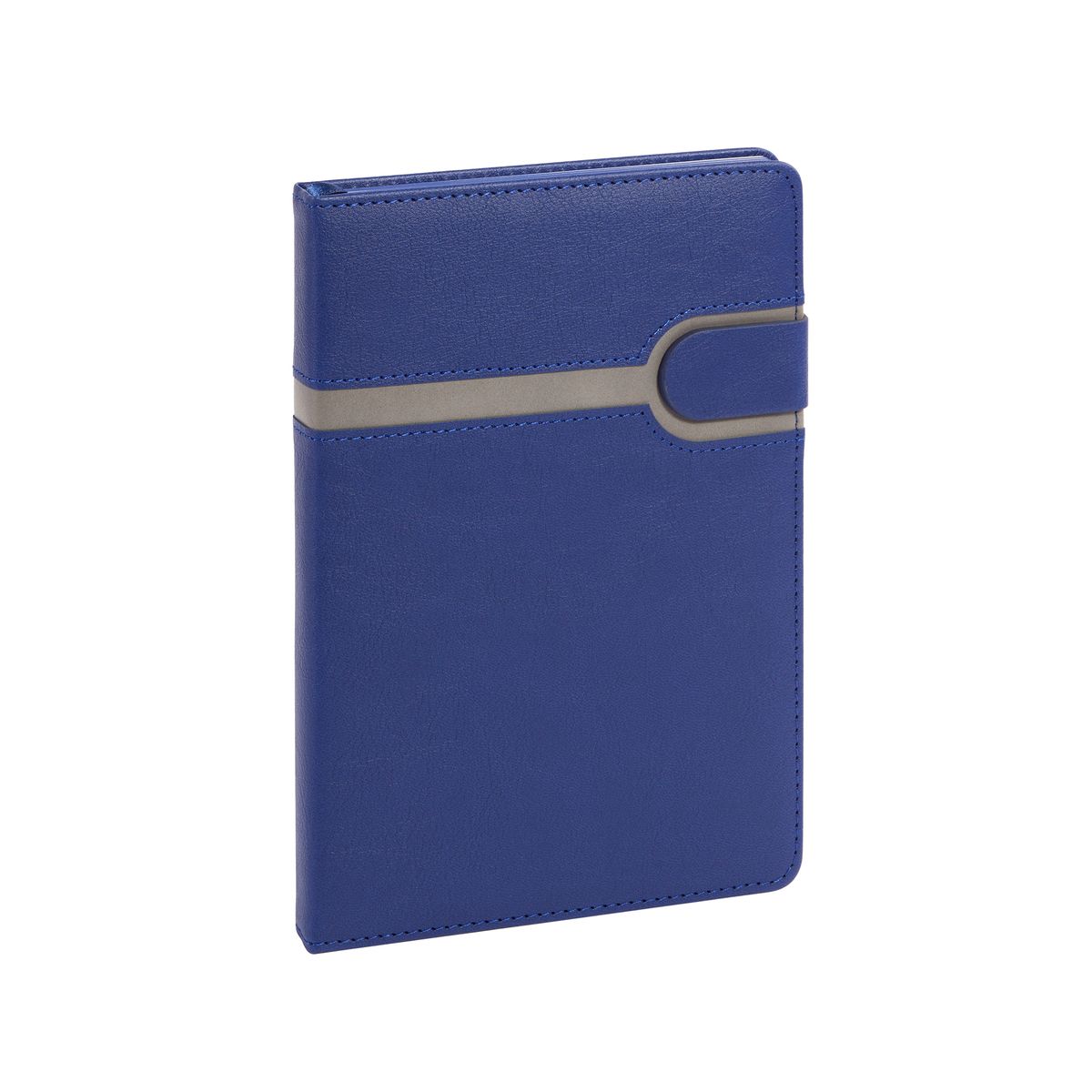 Матовая плотная обложка с выраженной текстурой натуральной кожи дополнена стильным вырезом – полосой серого цвета с прошивкой по периметру. Внутренний блок включает 256 страниц из бумаги плотностью 70 гр., срезом в цвет обложки и закладкой-ляссе, благодаря которой его удобно сразу открывать на нужной странице.