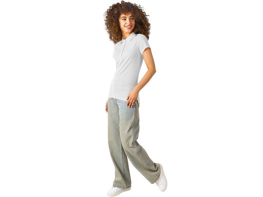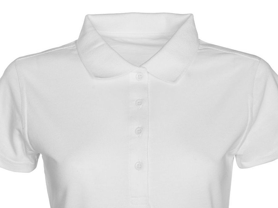 Женская рубашка-поло First. Воротник 1х1. Обшивка внутри воротника. Мужская и детская модели с 2 пуговицами, женская - с 4 пуговицами. Пуговицы с гравировкой в тон. Пике, 100% хлопок. 160 г/м2.