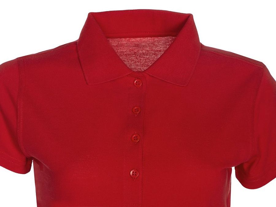 Женская рубашка-поло First. Воротник 1х1. Обшивка внутри воротника. Мужская и детская модели с 2 пуговицами, женская - с 4 пуговицами. Пуговицы с гравировкой в тон. Пике, 100% хлопок. 160 г/м2.