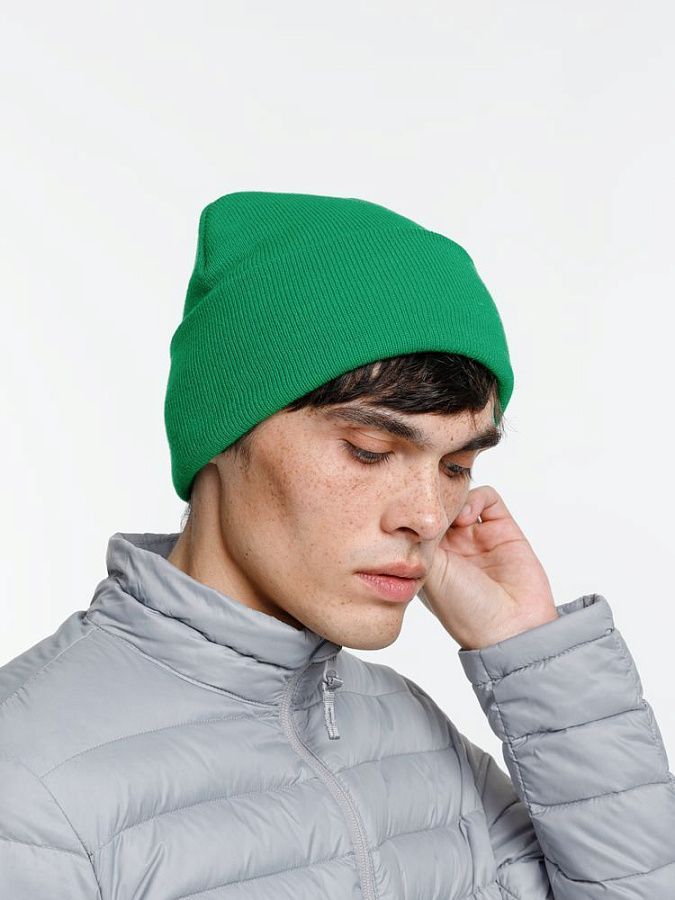 Двухслойная шапка из акриловой пряжи с регулируемым отворотом 7–10 см.