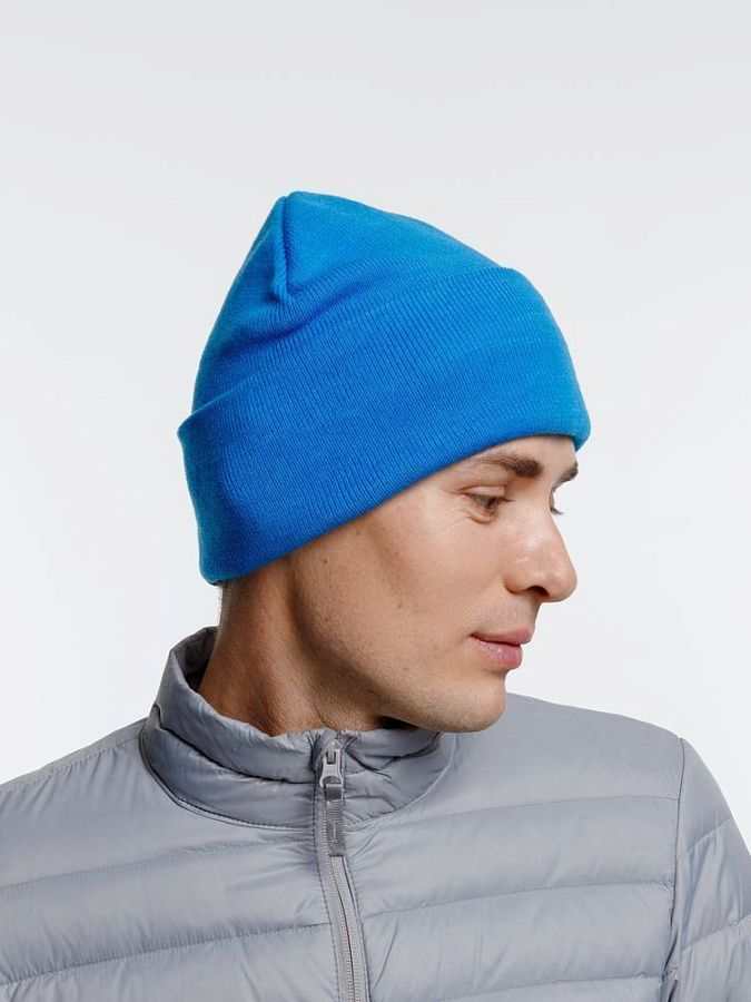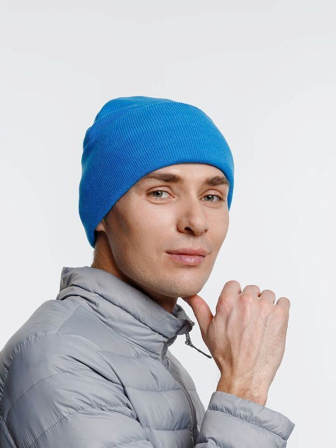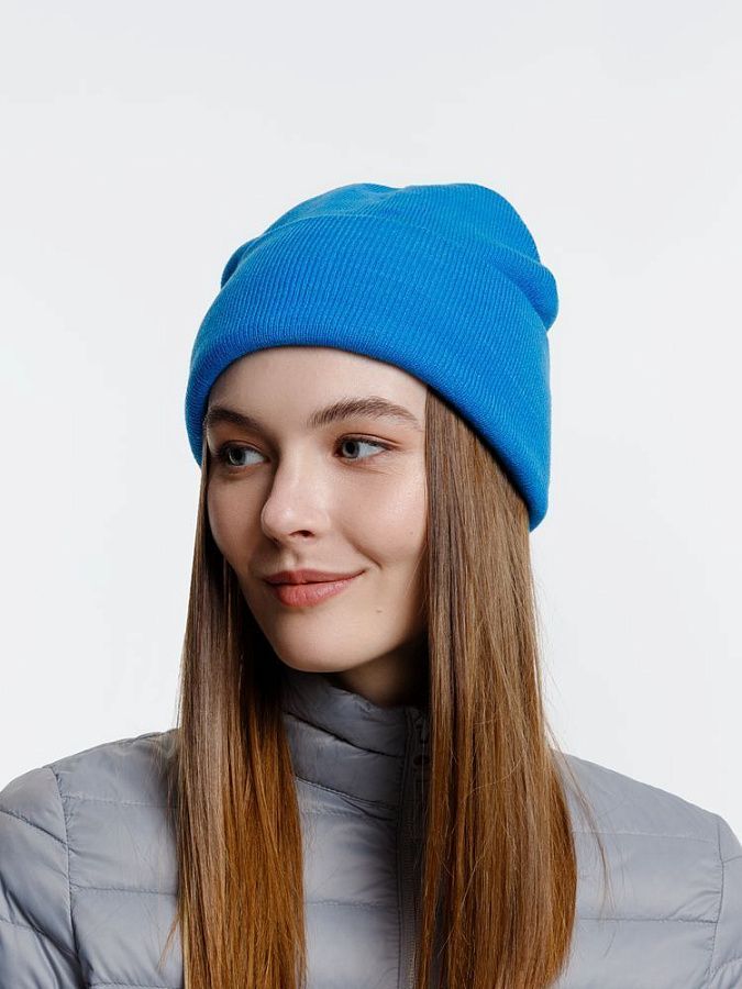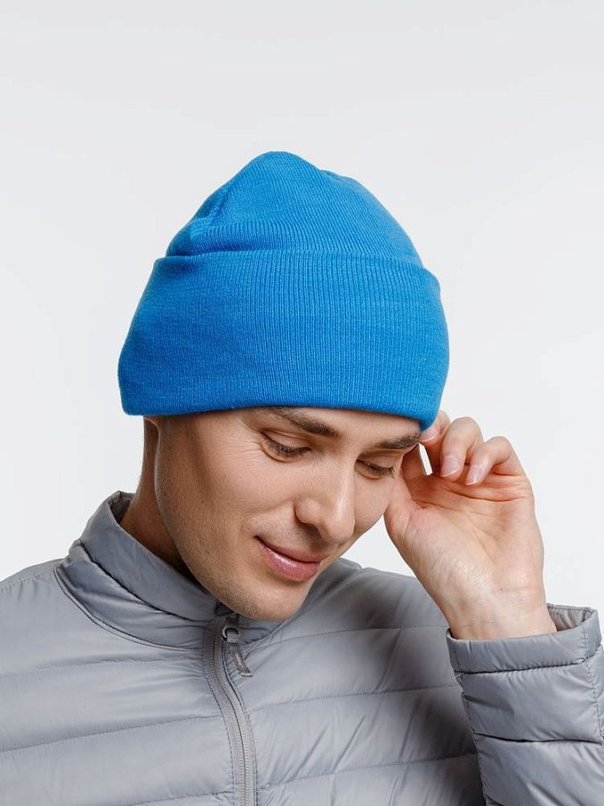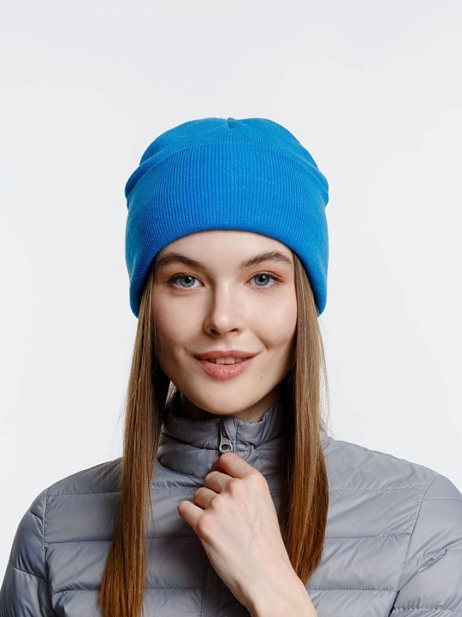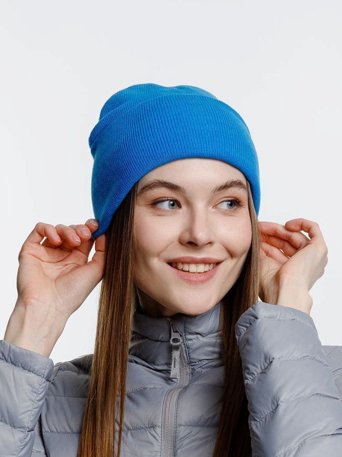 Двухслойная шапка из акриловой пряжи с регулируемым отворотом 7–10 см.