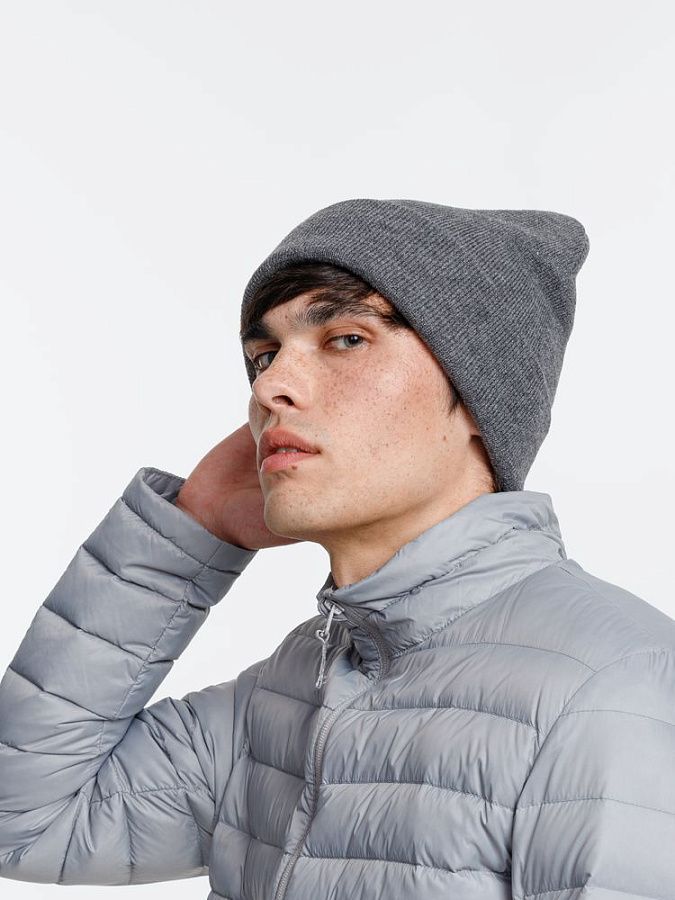 Двухслойная шапка из акриловой пряжи с регулируемым отворотом 7–10 см.
