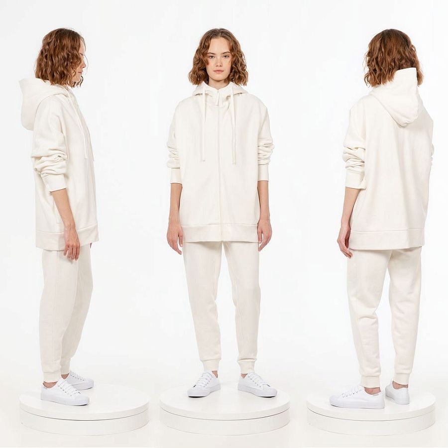 Базовая повседневная одежда актуального покроя в стиле унисекс разработана в рамках единой коллекции и легко собирается в комплекты. Специально спроектированные лекала и технологии пошива открывают простор для любых вариантов кастомизации и нанесения изображений. На видимой части изделий нет лейблов с айдентикой бренда, а название бренда с уходника легко удалить.