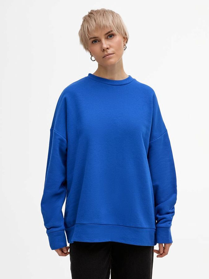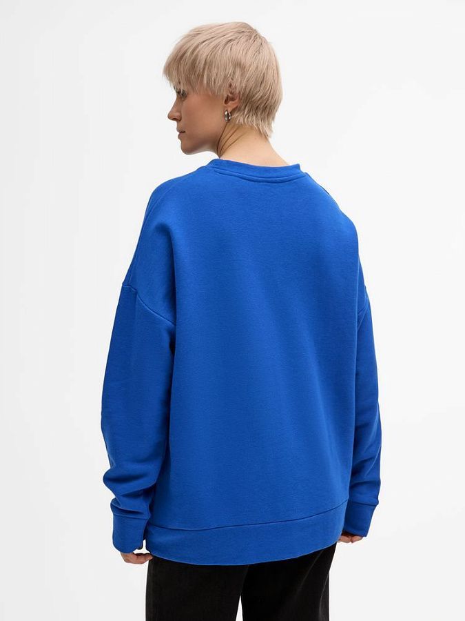 Свитшот унисекс свободной посадки со спущенным плечом.