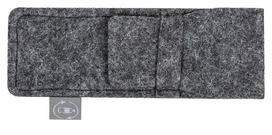 Футляр изготовлен из RPET-фетра. Этот материал хорошо держит форму и легко чистится, а ещё его использование позволяет заботиться об окружающей среде, поскольку он производится из переработанного пластика.