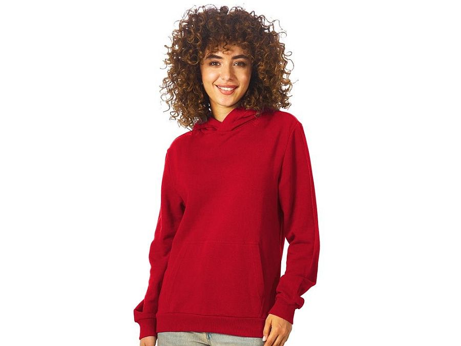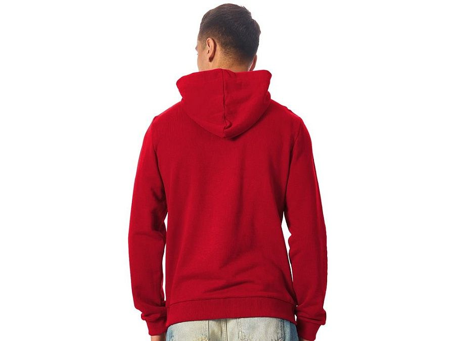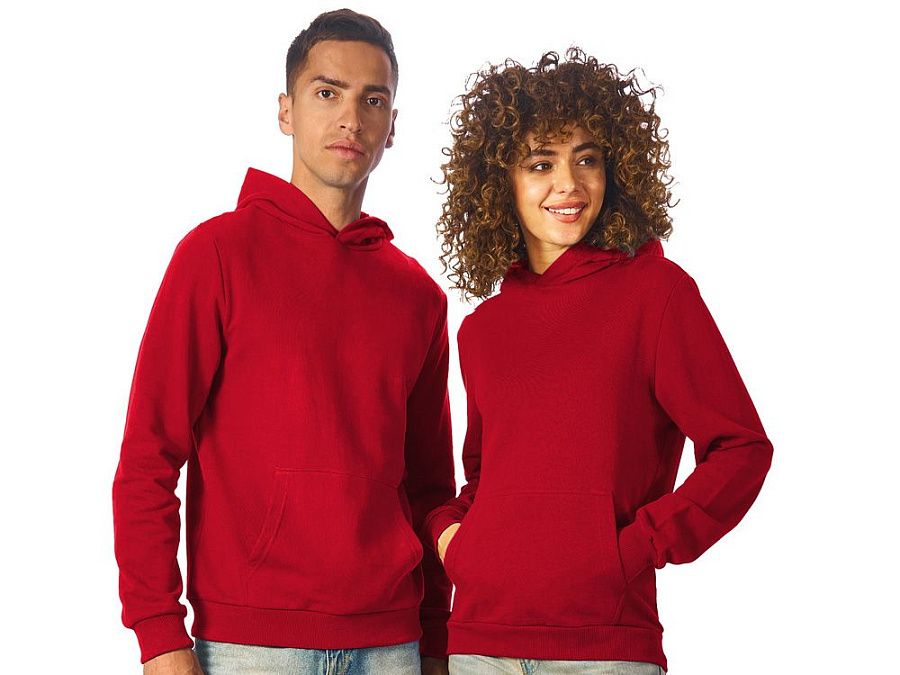 Толстовка с капюшоном (худи) из плотного хлопкового 3х ниточного футера. В капюшоне подкладка в тон, а горловина спинки дополнительно укреплена тесьмой с выделкой «елочка». Капюшон без шнурков – ничего не отвлекает от вашего брендирования. Манжеты и низ изделия отделаны рибом 2х2. Глубокий комфортный карман кенгуру на полочке. Полотно из утяжеленного хлопкового футера внутри с петельками без начеса.