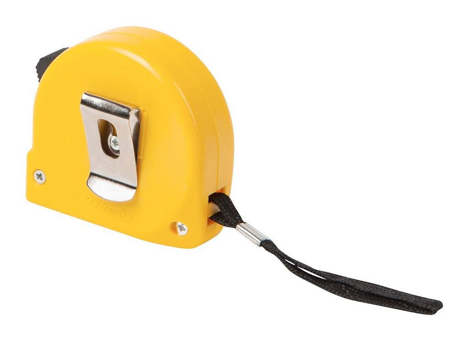 3-метровая рулетка с зажимом и ремешком. Показывает сантиметры и дюймы.