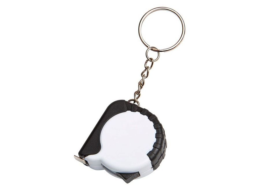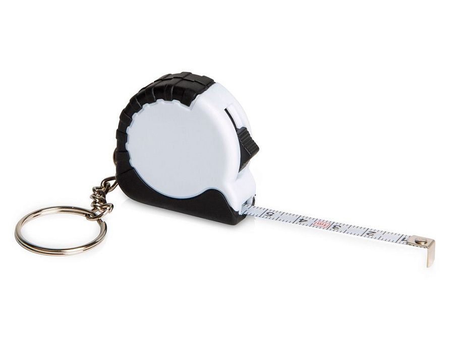 Рулетка длиной 1 м с возвратной пружиной и стопором со шкалой в сантиметрах и дюймах. Кнопка для фиксации ленты.