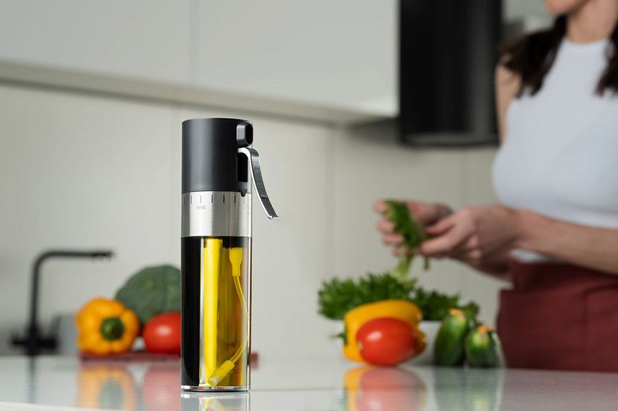 Спрей-дозатор Spatter позволяет контролировать количество используемого масла и уксуса при приготовлении блюд. Благодаря поворотному механизму на крышке можно использовать жидкости по отдельности, либо же смешивать в разных пропорциях.Емкость: 50 мл для масла, 50 мл для уксуса.