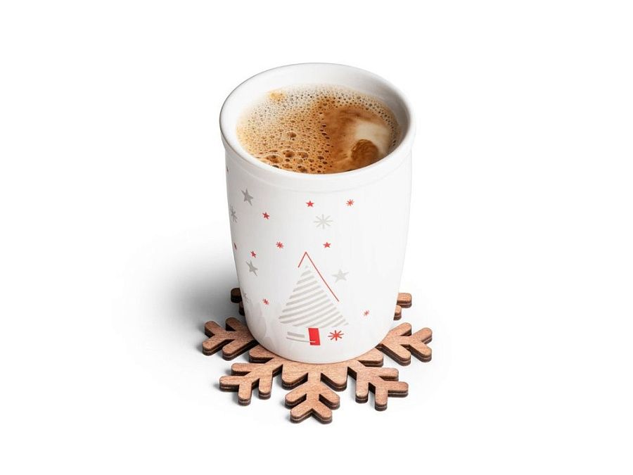 Набор из 4 фанерных подставок в форме снежинок. Поставляется в коробке из крафт-бумаги. 100 x 100 x 5 мм