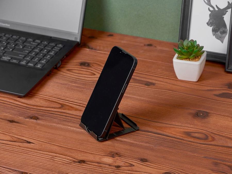 Компактная складная подставка позволяет расположить смартфон под комфортным углом наклона, что позволяет пользоваться гаджетом одной рукой. Это помогает не тратить время на лишние действия, чтобы проверить почту или мессенджеры как во время работы, так и в обеденный перерыв. Логотип можно нанести на фронтальной и обратной стороне, что делает его максимально заметным.