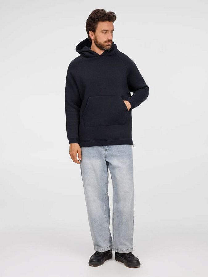 Худи унисекс удлиненного силуэта с молниями в боковых швах.