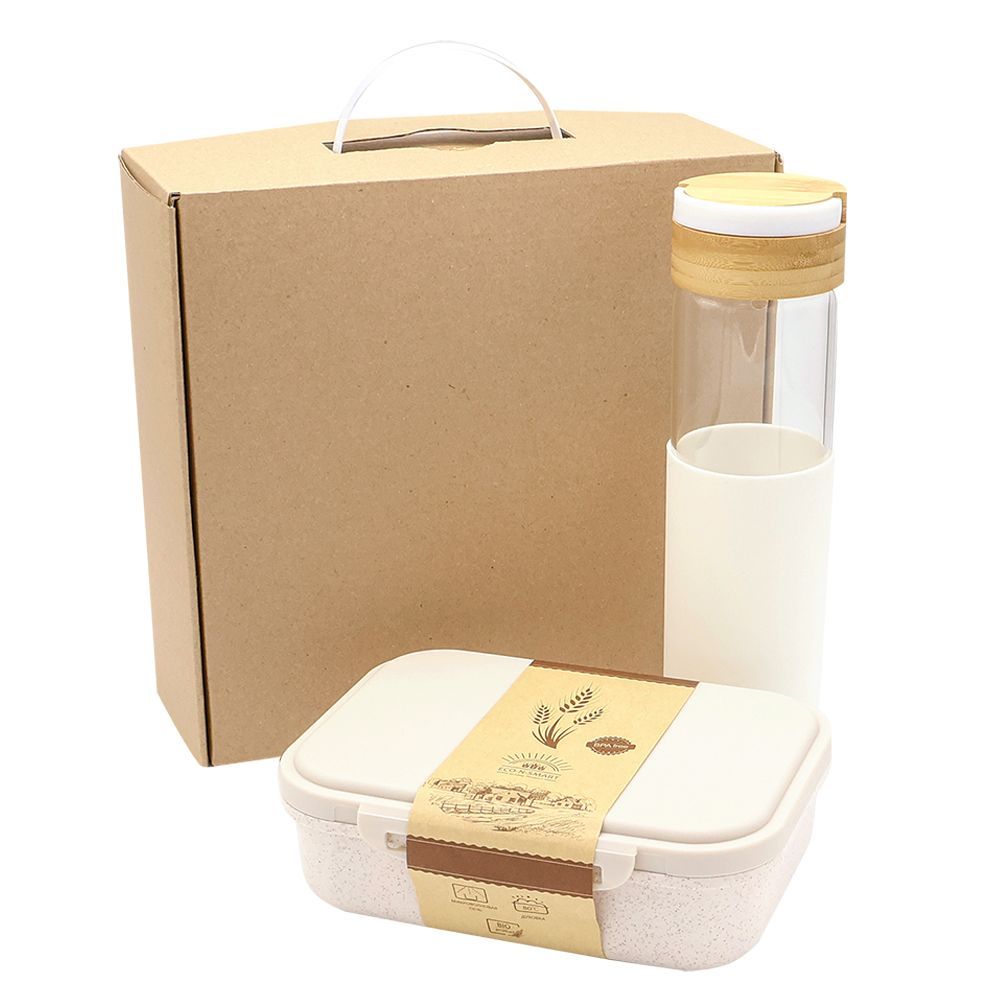 Бутылка стеклянная с силиконовой манжетой и бамбуковой крышкой Glass , белый - 1 шт. (Артикул: 14032.01)