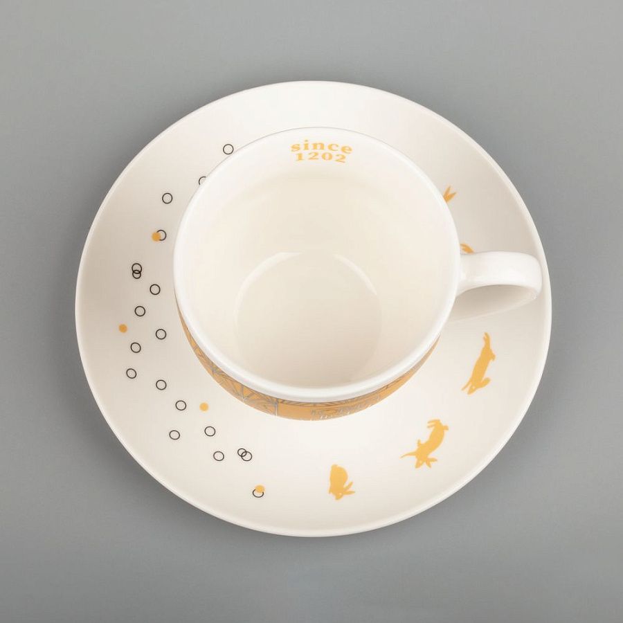 чашка: диаметр 8,3 см, высота 7 см, ширина с ручкой 10,6 см; блюдце 14,1х14,1х1,7 см; упаковка: 14,5x14,5x8,5 см