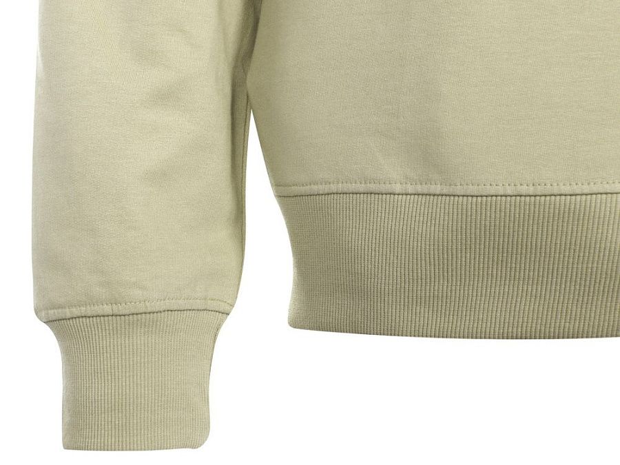 Горловина, низ и манжеты отделаны рибом 2х2. Горловина дополнительно усилена тесьмой по внутренней стороне спинки, кроме того, низ и манжеты имеют дополнительную отстрочку для сохранения формы изделия в течение всего срока носки.