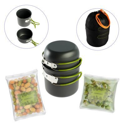 —Подарочный набор «Тайга»: кастрюльки, арахис, фундук, чехол-сетка, артикул 15062