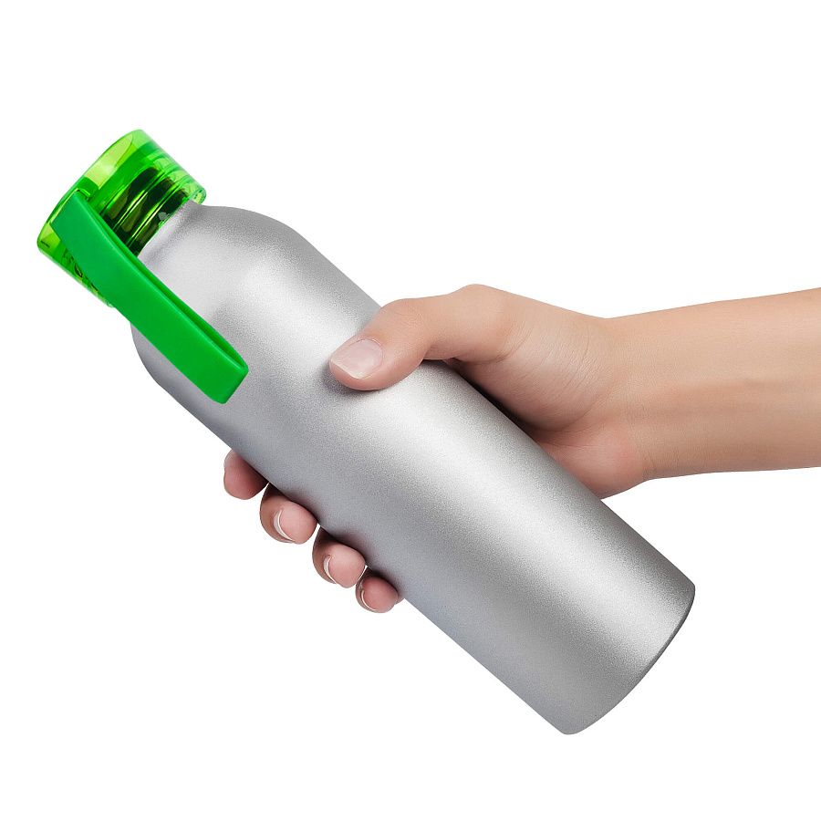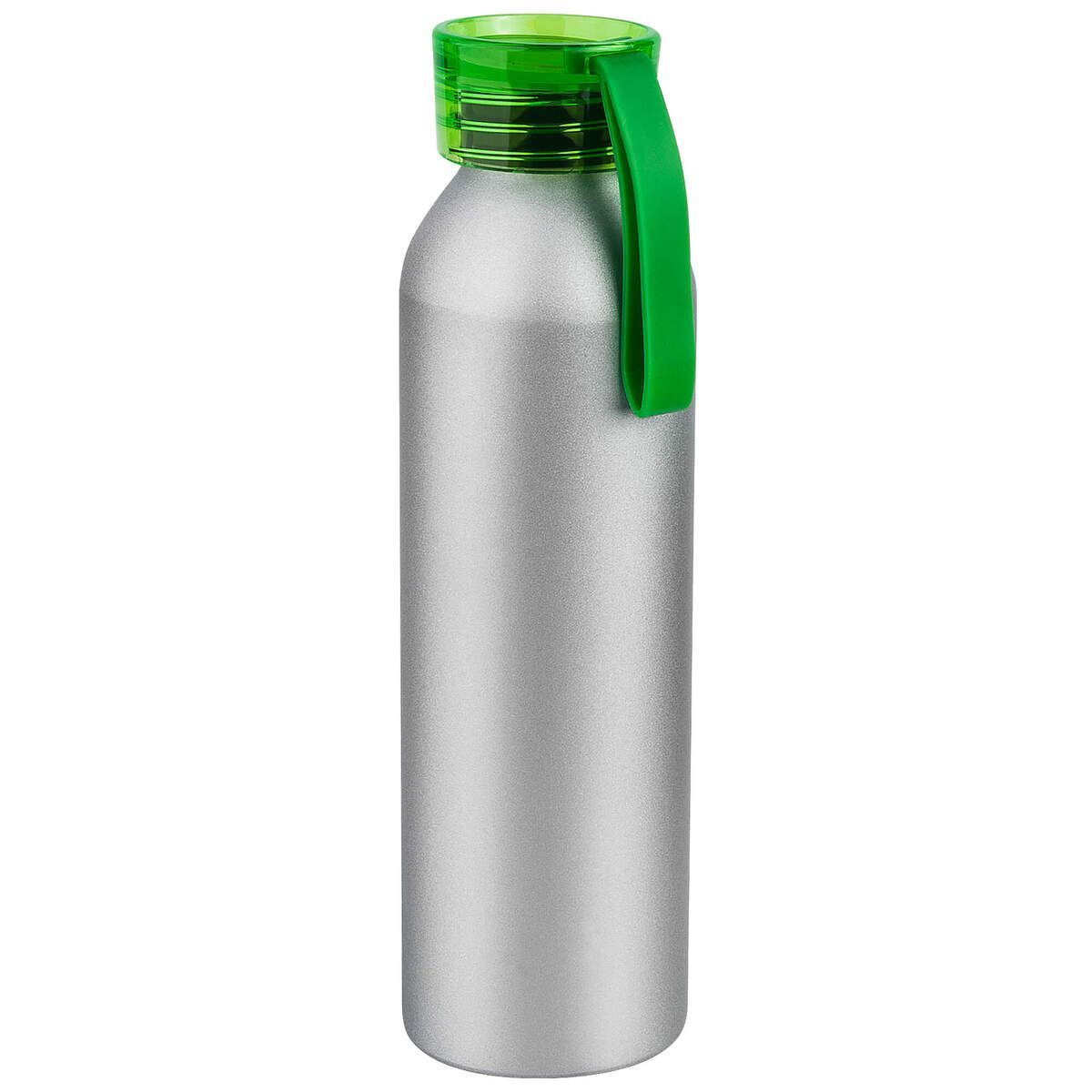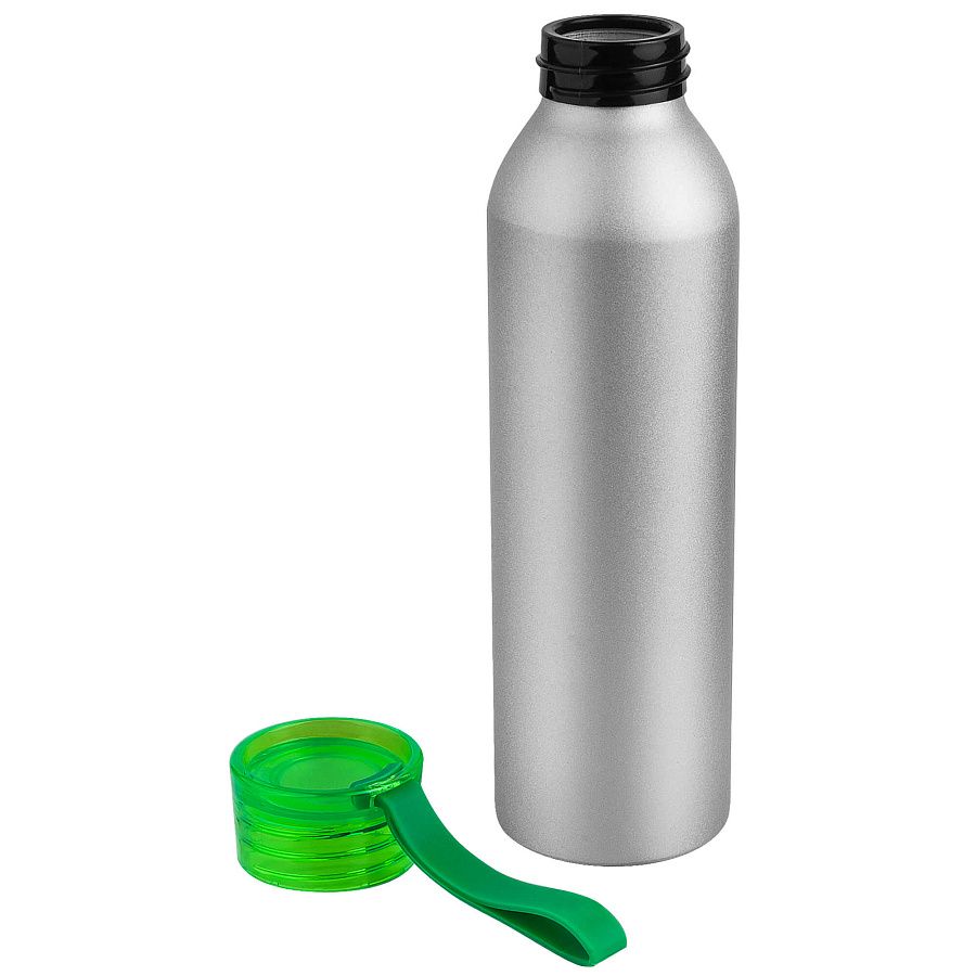 Алюминиевая матовая бутылка с пластиковой крышкой.