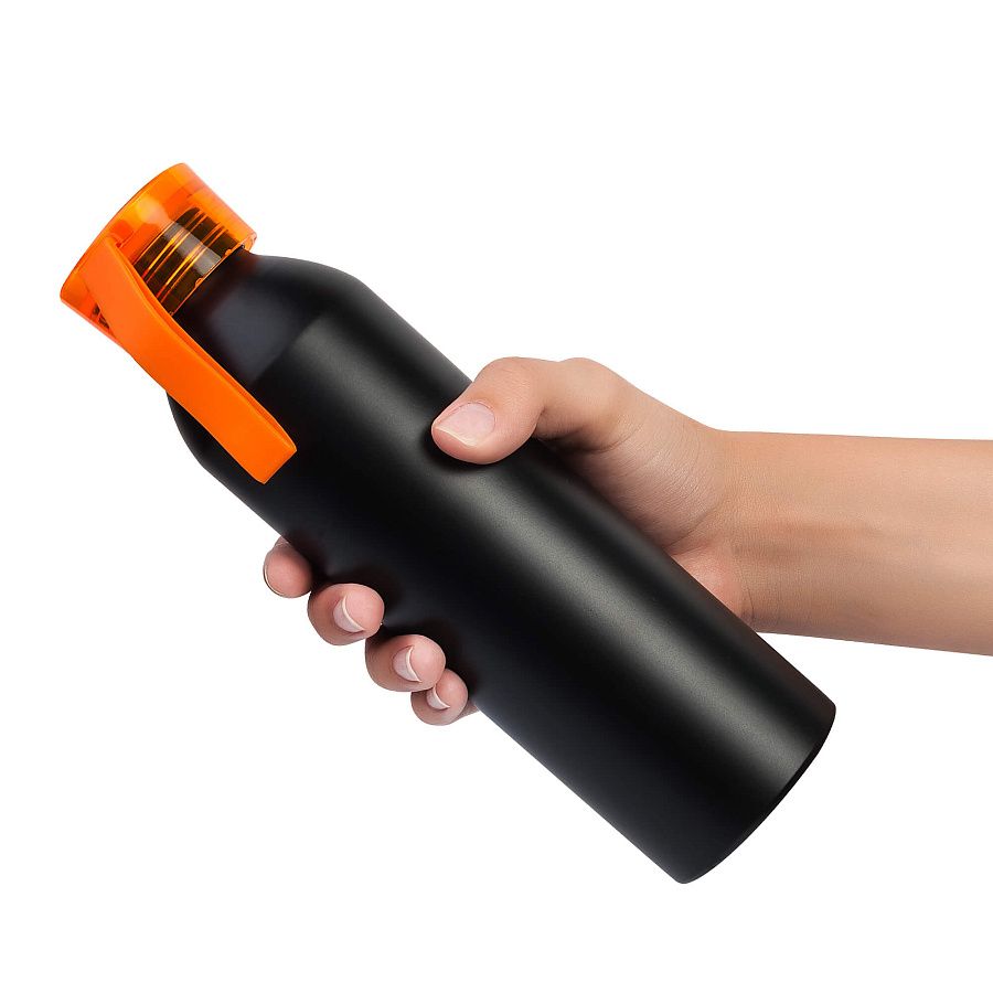 Алюминиевая матовая бутылка с пластиковой крышкой.