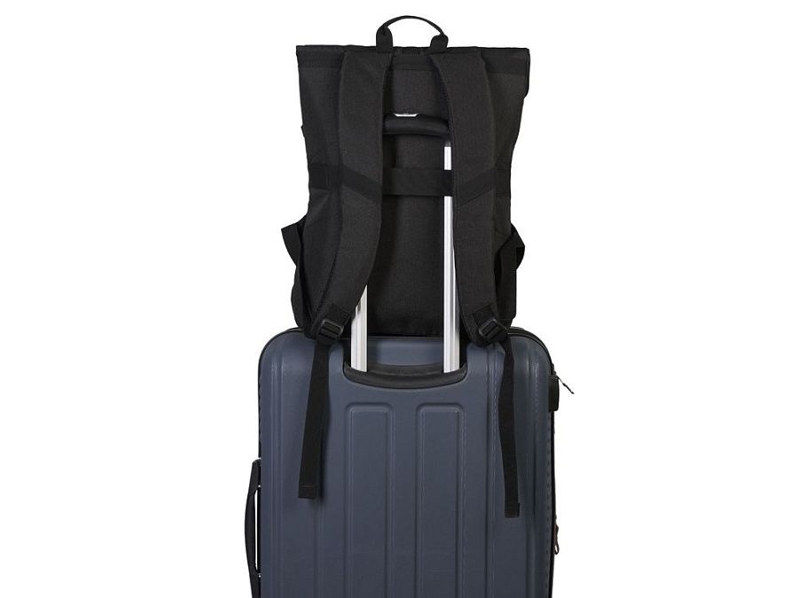 Удобный городской рюкзак с карманом для ноутбука можно использовать в поездках благодаря его вместимости и удобной застежке с металлическим крючком, которая регулируется по степени наполненности рюкзака. Для этого на спинке рюкзака предусмотрен ремень для крепления на ручку чемодана. Благодаря двойным бегункам молния основного отделения открывается сверху и сбоку. Снаружи карман на молнии для хранения мелочей. Лямки регулируются по длине. В комплекте нетканый мешок для хранения.