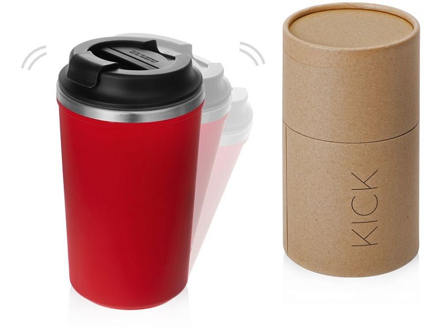 Термокружка «Kick» отлично подойдет для повседневного использования как на работе, так и дома. Термокружка надежно крепится к столу за счет присоски на дне, что исключает падения при случайном задевании. Чтобы воспользоваться кружкой, ее нужно поднять вертикально. Дополняет конструкцию герметичная крышка с клапаном. Внутренняя колба выполнена из пищевой нержавеющей стали 304 марки, снаружи — пластик с покрытием софт тач. Удерживает тепло около 3.5 часов.