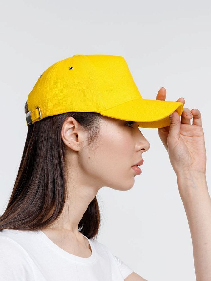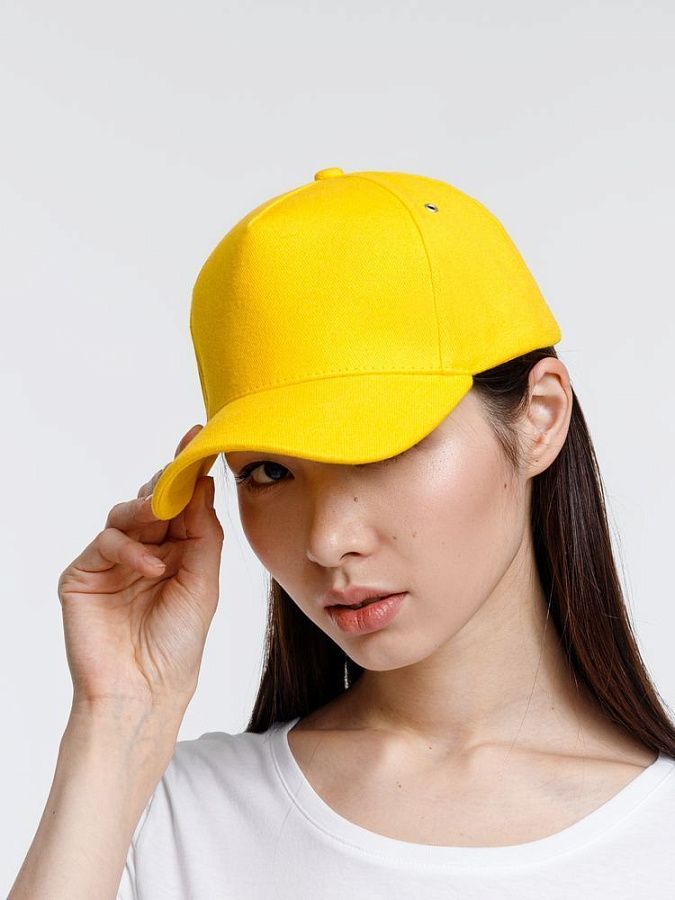 Минималистичная бейсболка с закругленным козырьком и большим местом для нанесения логотипа.
