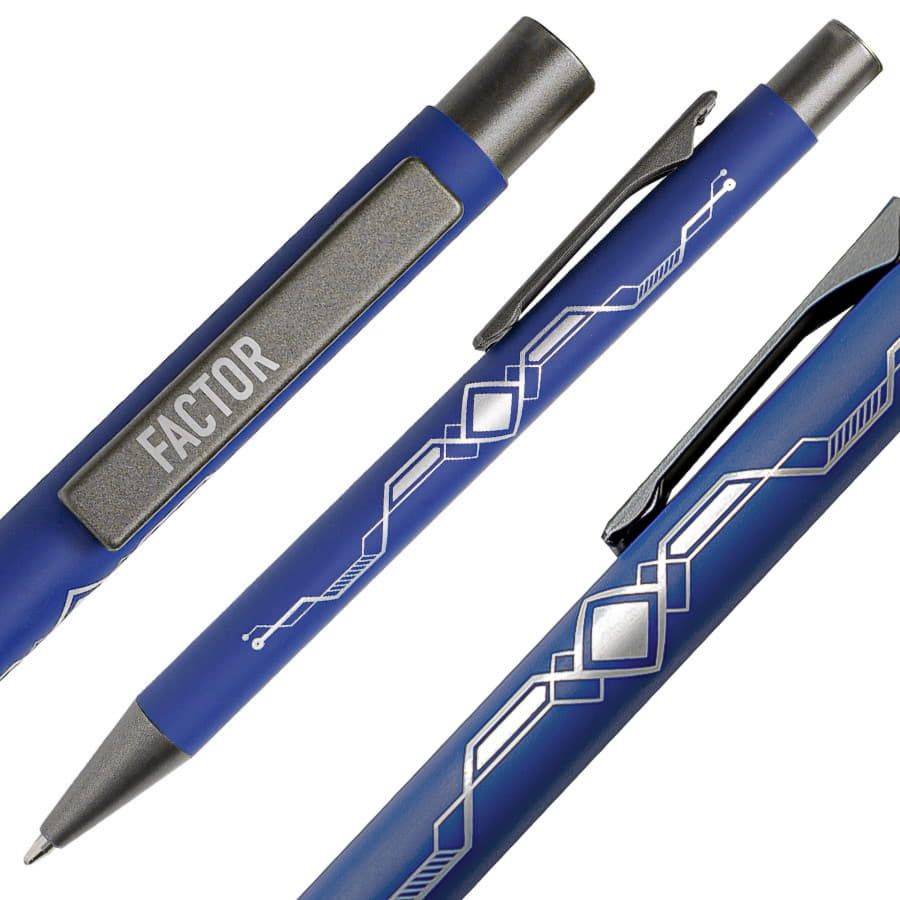 Модель ручки FACTOR – это оптимальный выбор для тех, кто предпочитает добротное качество, надежность и изящную простоту. Этой ручкой писать легко и удобно, она буквально скользит по бумаге благодаря качественным чернилам и надежному пишущему узлу. Все эти качества позволят ручке служить вам верой и правдой долгое время. А клип и корпус данной модели отлично подойдут для нанесения вашего логотипа. • Pantone, близкий к 3584 С• Размер 140*10 мм• Корпус из алюминия с покрытием soft touch• Металлический клип-прищепка серого цвета • Пластиковые носик и кнопка в цвет клипа• Нажимной механизм подачи стержня• Пулевидный пишущий узел 1.0 мм• Длина линии письма 1000 м • Чернила Dokumental. Цвет чернил синий• Сменный стержень Parker type• При гравировке вскрывается натуральный цвет алюминия, который может быть либо более белый, либо более серого оттенка.Результат гравировки зависит от настроек оборудования!