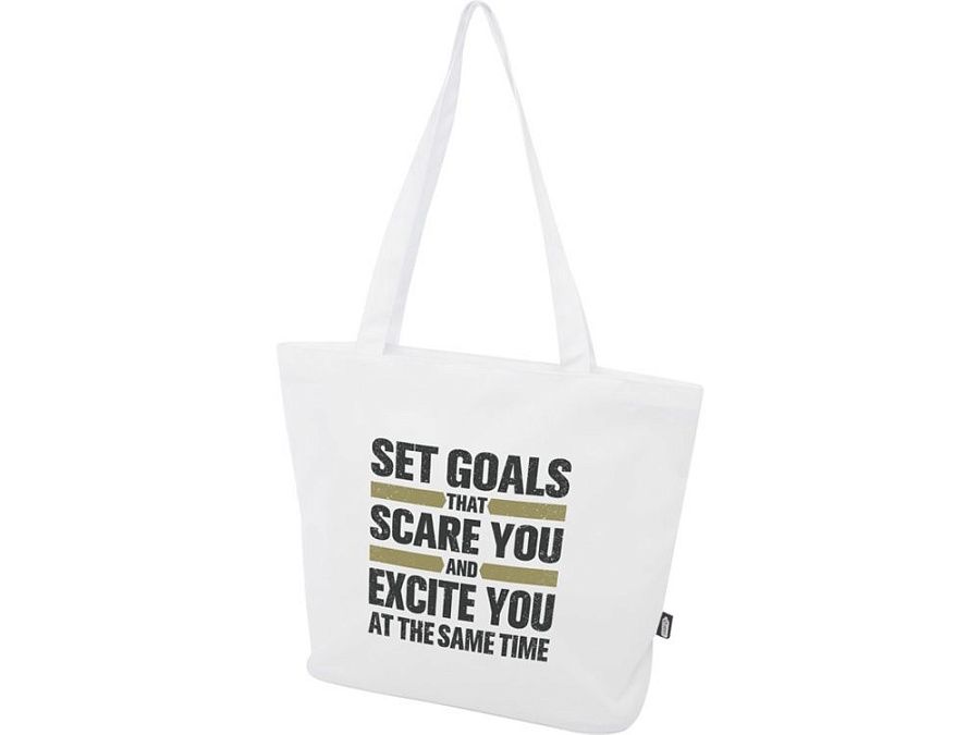 Изготовленная из водоотталкивающего переработанного PET-пластика 600D, эко-сумка на молнии Panama из переработанных материалов, сертифицированных GRS, является идеальной и экологичной многофункциональной сумкой для похода на мероприятие, на пляж или в магазин за продуктами. У изделия имеется основное отделение на молнии и внутренний карман на молнии, достаточно большой, чтобы вместить телефон и другие ценные вещи. Ручки длиной 34 см позволяют легко носить эко-сумку через плечо. Прочность до 10 кг. Не содержит ПВХ. 600DGRS certified recycled polyester.