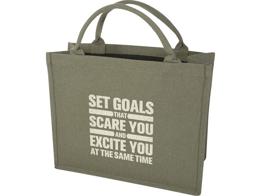 Эко-сумка Page из переработанного сырья идеально подходит для хранения повседневных вещей и для различных поездок, от библиотеки до продуктового магазина. Благодаря коротким, но прочным ручкам эту сумку удобно носить в течение длительного времени. Эко-сумка изготовлена из переработанных волокон Cyclo®, в которых используются предварительно отсортированные отходы, определяющие цвет пряжи. Эти волокна не только снижают потребность в первичных ресурсах, но и демонстрируют приверженность циклическому образу жизни, воплощая суть сокращения отходов и продвижения системы с замкнутым контуром. Каждая сумка также поставляется с индикатором Aware™. Эта инновационная функция позволяет пользователям отслеживать происхождение и путь своего товара с помощью QR-кода, повышая прозрачность цепочки поставок и способствуя более прочной связи между продуктом и процессом его производства. 70% Recycled cotton, 30% Переработанный Полиэстер, 500 g/m2.