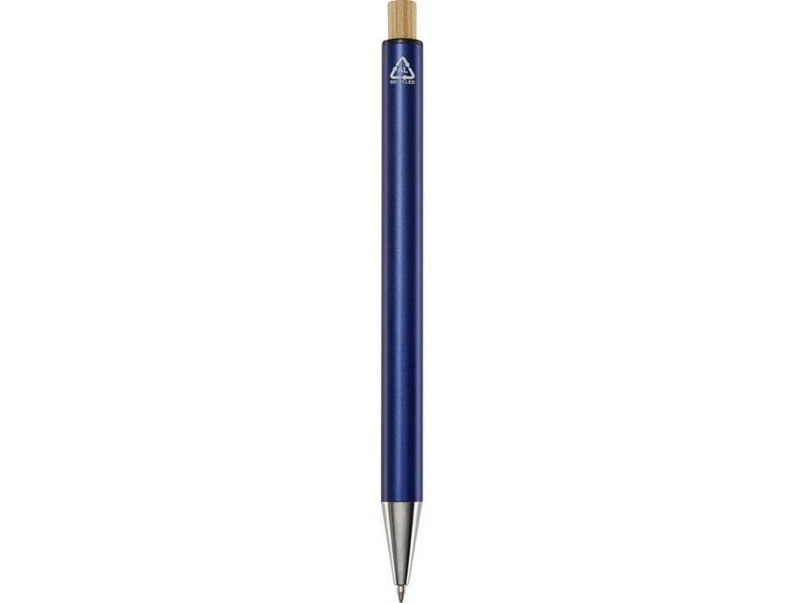 Шариковая ручка Cyrus изготовлена из переработанного алюминия, что требует меньше энергии, чем производство алюминия из сырья. Это также уменьшает количество отходов на свалках и помогает сохранять природные ресурсы для сокращения выбросов парниковых газов. Нажимная кнопка изготовлена из бамбука. Цвет чернил: синий. Длина непрерывной линии: 800 метров. Размер пера: 1,00 мм. Recycled Aluminium.
