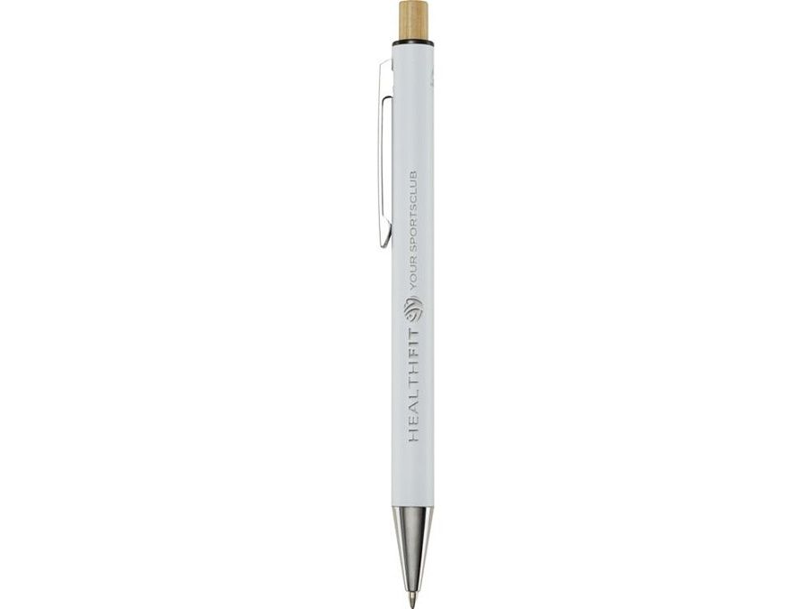 Шариковая ручка Cyrus изготовлена из переработанного алюминия, что требует меньше энергии, чем производство алюминия из сырья. Это также уменьшает количество отходов на свалках и помогает сохранять природные ресурсы для сокращения выбросов парниковых газов. Нажимная кнопка изготовлена из бамбука. Цвет чернил: синий. Длина непрерывной линии: 800 метров. Размер пера: 1,00 мм. Recycled Aluminium.