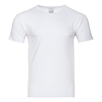Мужская футболка облегающего силуэта с округлым вырезом и втачным рукавом.