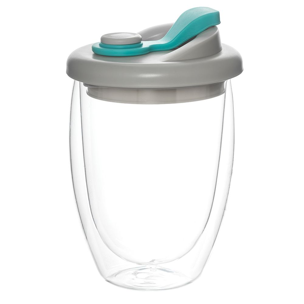 Стакан стеклянный Lotos с двойными стенками и крышкой, голубой, артикул 56000