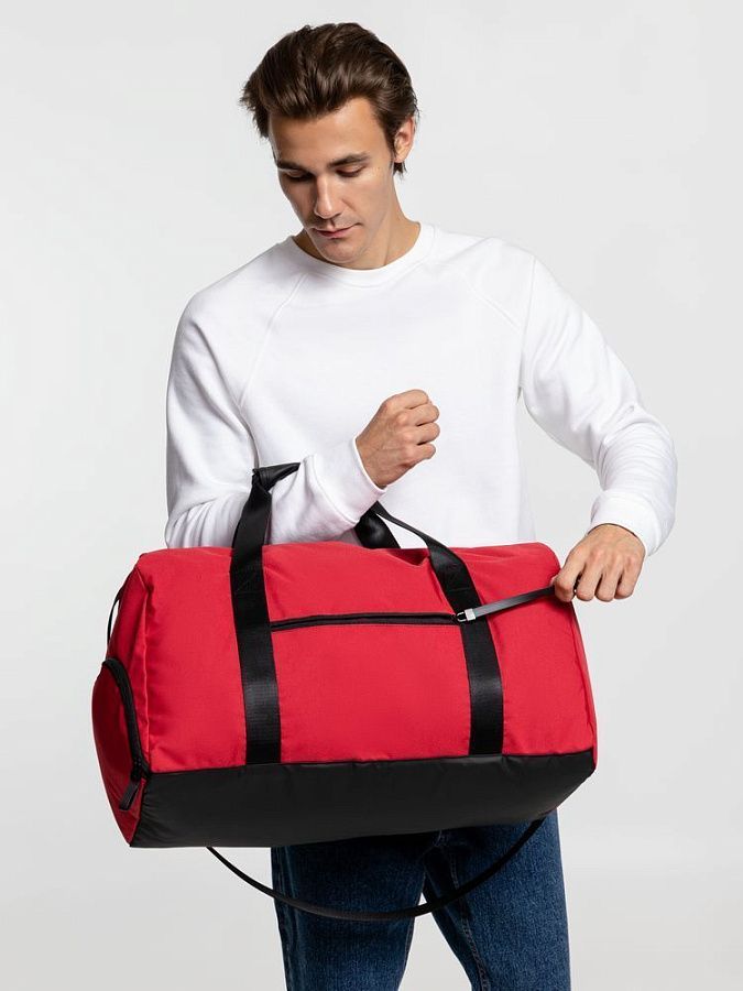 Легкая и стильная, вместительная и удобная, с карманами внутри и снаружи — сумка будет верным спутником в путешествии или командировке, а также в спортзале.