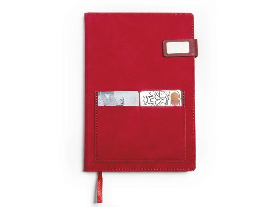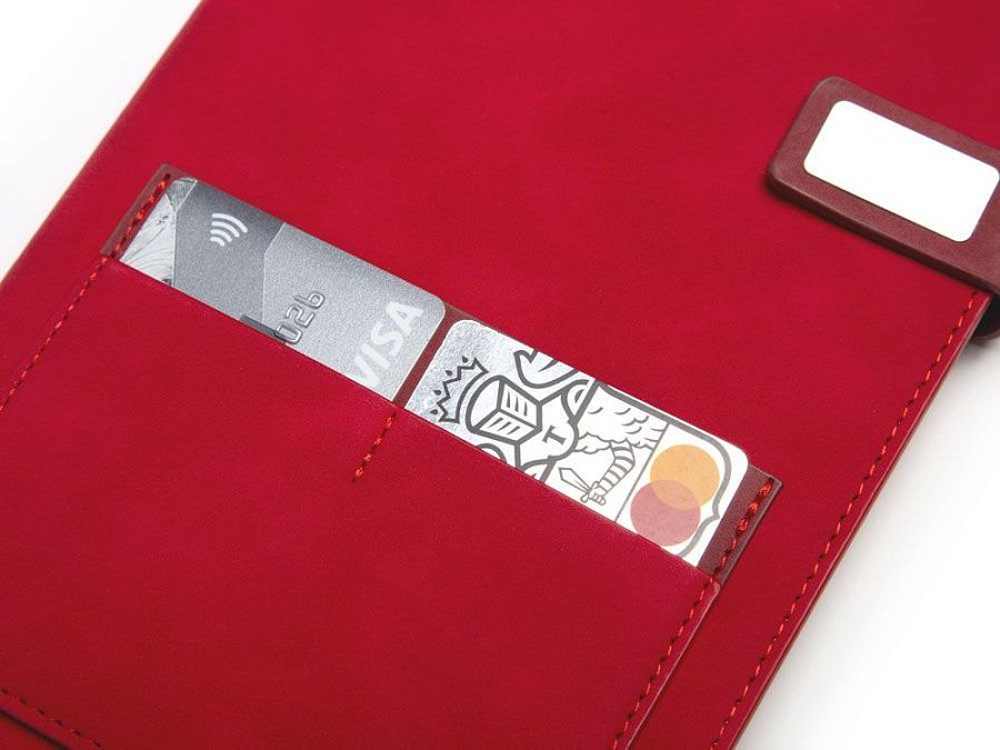 Бизнес-блокнот Freya в твердой обложке позволит вам не только навести порядок в вашем расписании и делах, но и не даст потерять важные визитки — для них прямо на обложке предусмотрен отдельный карман. Карман имеет три отделения: два под размер визиток или банковских карт и одно большего размера. Клапан позволяет сохранить блокнот в отличном состоянии в течение долгого времени даже при ежедневном использовании, не сминая листы.