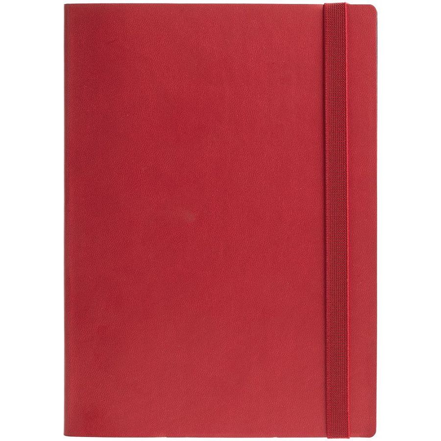 Ежедневник с гибкой обложкой выполнен из материала Latte, красный РР, и дополнен резинкой шириной 1 см, капталом и ляссе красного цвета.