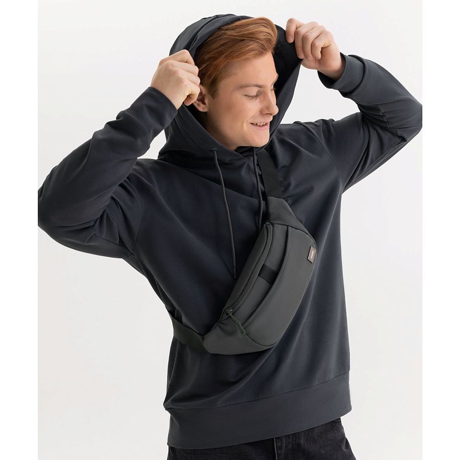В основное отделение сумки легко поместится ваш телефон, зарядное устройство и прочие необходимые предметы. Также предусмотрены два накладных кармана.